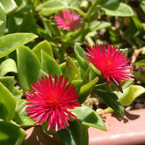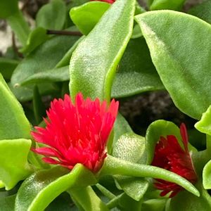 ハナツルソウ マツバギクにも似た真っ赤なお花❣️ マツバギクよりは、二回りほど小さい可愛い花🌺💖 お向かいさんの門扉に掛けてあり 毎日みとれています 可愛い😍💕 🏷真っ赤な火曜日 🏷あっ火曜日 🏷ちっちゃいものクラブ に参加させて頂きます。 別名;ベビーサンローズ ハマミズナ科(又はツルナ科) 原産地;南アフリカ 葉は多肉質 雄蕊;80本程 雌蕊;4心皮性 花言葉;素朴 🏷元気になって! 🏷負けないで! 1000picの花に願いをこめて🙏