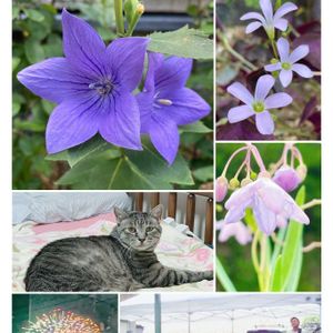 こんにちは😊 隣市が3日連続で39度でした。 10数キロ離れた我が街もそのくらいかと思います🥵 猛暑の中、お花は頑張って咲いています。 上からキキョウ、オキザリスとライアングラリス、ルリヤナギのお花です。 中段はトラ次郎の近影です。 8月で満17才です。人間年齢に換算すると84才。 元気に長生きしてほしいです😊 下段は昨日の花火大会です。 家の2階からかろうじて見えます🎆 その横はバンドです。 昨日の午前中は地元小学校の子ども祭りがあって、オープニングから演奏させていただきました。 その時の写真です。(ボケてます💦) 子供たちと付き添いの人達約30人が、最初の3曲を聴いてから、次のイベント会場に移動します。 で、その後のリスナーは4.5人😅 聴いてもらえるだけありがたいです😁 YouTubeにアップした時はお知らせいたします。 視聴範囲、期間限定で限定公開させていただく予定です♪😆 いつもながらの迫力のないボーカルで恐縮です🙇