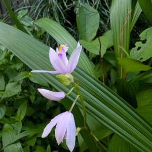7/19 法金剛院に咲いていた花たち🌿 ① ヒメヒオウギズイセン🧡鮮やかなオレンジ色の花が目立ちます😉 ② 紫陽花を まだ見れた😆 ③ 大きな花が咲きそうな🪷蕾 ④マンリョウの花、今 たくさん花が咲いてる🤍🌿 ⑤ルリヤナギ 昨年初めて 目にして また 同じ場所で咲いてるのを見れました٩( ᐛ )و