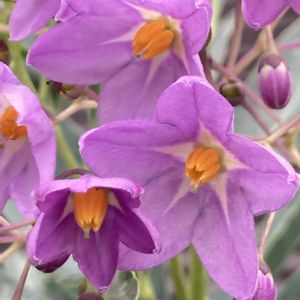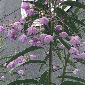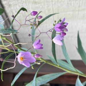 ルリヤナギ💜 ナス科のお花で葉っぱがヤナギに 似てる所から名前が付いたとか 成長が早くて昨年挿し木した枝にも 花が咲きました😊💜