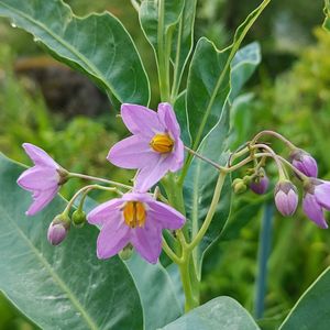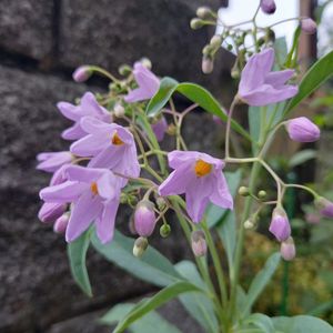 おはようございます😊 今日の天気は曇り時々晴れ☁️☀️ 最高気温32度 最低気温27度 我が家の小さな花壇より🌸🌼🌺 💜 ルリヤナギ(瑠璃柳)💜 今朝は台風🌀の影響でしょうか?風が強いです🌪️たった今…突然のスコール☔️カタブイ(片降り)がありました…☔️ 花色に惹かれて…一昨年9月に植木市でお迎えしたルリヤナギ💜に 今年も薄紫色の涼しげな花が咲いてきました💕💜🌿💜🌿💜 花は淡い紫色で星形でやや下向きに咲きます💕💜🌿💜🌿💜夏のお庭に薄紫色のお花があると…涼しげで良いですよね🍃💜🌿💜大好きなパープル色のお花です💕💜🌿💜🥰 💜日本には江戸時代に沖縄(琉球)を経て入って来たことから「リュウキュウヤナギ」とも呼ばれています❣️ 💜ルリヤナギの名前は、柳に似た 葉姿と花色に由来しています。 花は瑠璃色ではなく淡い紫色です❣️ 和 名 ルリヤナギ(瑠璃柳) 別 名 「スズカケヤナギ」 「リュウキュウヤナギ」 「チョウジカ」 「ハナヤナギ」など。 科属名 ナス科 ナス属 原産国 南アメリカ 花 期 7月~9月 花言葉 「叙情」「胸の痛み」 「恋の痛み」 💜•*¨*•.¸¸☆•*🌿💜🌿•*¨*•.¸¸☆*・💜