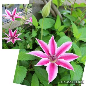 目を引く濃いピンクのクレマチス、今年初開花しました😊❣️ 毎年咲いてくれます🎶が、 こんなに咲きそろったのは初めて! なんでだろう😆