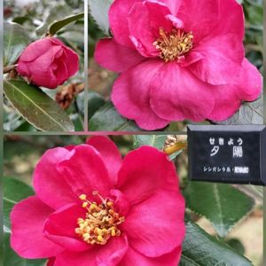 11/25㈫① 今日のお花 サザンカ 今年2月に神代植物公園ツバキ園で写したサザンカたちです 1️⃣夕陽(せきよう)シシガシラ系 12月以降によく見かける八重咲きの紅いサザンカはシシガシラ系です💗 シシガシラは小輪ですが、夕陽は肥後産で大輪でした💗💗熊本産ではないところに歴史を感じます😃 2️⃣鎌倉絞り ハルサザンカ中部産 混色のサザンカは個性的で魅力的ですね〜🤗🤍❤️🤍❤️🤍❤️ 3️⃣御美衣(おみごろも) 埼玉産 比較的に新しい品種のようです☺️コントラストが綺麗🤍🤍💗🤍🤍💗 4️⃣京錦(きょうにしき) ハルサザンカ 江戸産 古くから有るサザンカなので、東京産ではなく江戸産なのですね💡絞りが素敵ですよね✨🩷💗🤍💗🩷🤍 5️⃣肥後入り日の海 肥後産 情景が思い浮かぶような名前です💗💗🌅💗💗