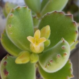 こんにちは☀️ 徒長した熊童子さん に お花が咲きました ぷっくりと膨らんだ葉が愛らしい