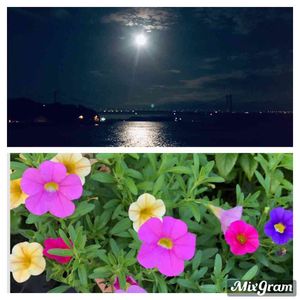 こんばんは🎶 中秋の名月🌕 瀬戸大橋の上で .... 小さな庭のカリブラコア...,🌸🌼🌸