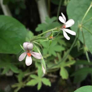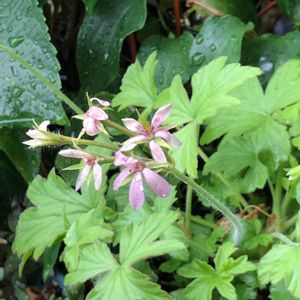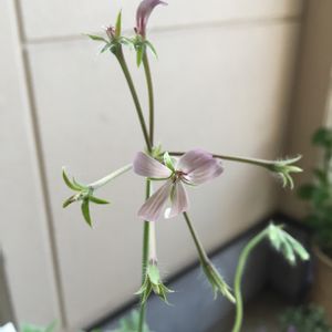 花MARUさんにもらった ペラルゴニウム パールグレーが ひっそりと咲いてました😊 グレーって言うよりピンクかな 雨が似合う〜☔️