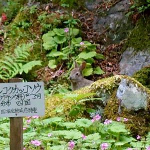 💠四国鞨鼓草(シコクカッコソウ)💠 先月 山で見たこの花は 四国固有種のサクラソウの仲間です。 立ち入り禁止のこの花園を眺めていると 向こうの方に 野うさぎがひょっこり顔を出していました。 遠方なので📱では上手く撮れませんでしたが あまりに可愛くて皆さんにお見せしたいと 思いました⸜(*ˊᵕˋ*)⸝♡ しばらくしてピョンピョンと 何処かへ飛んで行ってしまった 兎さん- ̗̀ 𓃺 ̖́-💠☘️ 絶滅危惧種で手厚く保護されているこの花と共に 思い出に残るpicです❀.*・゚🐇⸒⸒〰︎❤︎ピョン