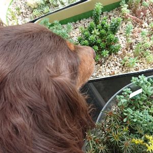 はぁ♥️セダムが可愛すぎる…… 斑入りパリダムが 本領発揮してきました✨✨✨ 涼しくなったからかマロン警備員🐶も タニパトへ……やはりセダム推し🤣