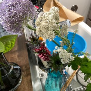 水揚げ中... たくさん素敵な子がいて よくばって買ってきた♡ お花の名前聞いたのに忘れてしまった。 よかったら教えてください🙇♀️🙇♀️🙇♀️ 紫陽花のスノーボールも買ってきたのに、 見えない😩