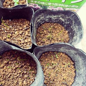 4日前に植えたわけぎ すぐ出てきた 小さいのも、球根分割に失敗したかな、というのも、全部出てきた かわいすぎる いいコだね~👋