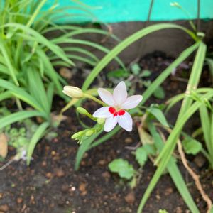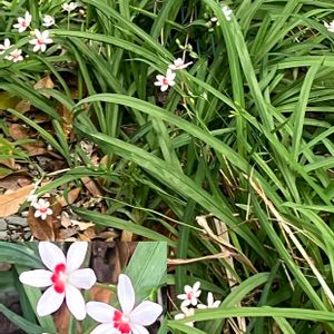 我が家の庭にも 可愛い花姿が😍 花友さんの 赤系の可愛いお花に刺激され 我が家の白花 投稿します😊 姫ヒオウギ 色は (オレンジ、ピンク、白、紫、緑)