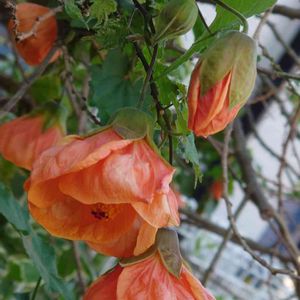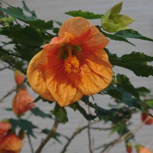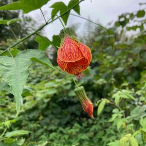 ショウジョウカが咲き始めました🧡 チロリアンランプとそっくりな 樹形だったのでこの花を見た時は⁉️ 同じアブチロンでも 種類があるんですね🎵