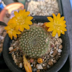 サボテンの花ぁ咲いてるぅ 砂と岩の西部〰♫ レブチア宝山 花の命は短いけど、次々と咲きます🌼