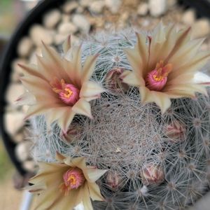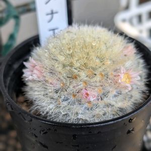 🏷白い水曜日♡ マミラリア満月の花が咲きました 雄しべが羊毛糸玉みたいで楽しいです