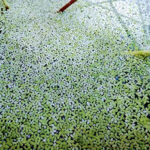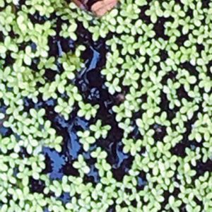 水槽にホテイアオイを入れた際に混入したと思われるアオウキクサが増殖中