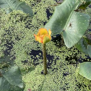 6月の末頃に、picを投稿した水元公園・小合溜のコウホネ。 先日、同じ場所に立ち寄ってみて、ビックリ‼️ まだ咲いてる😳 花期は6〜9月ごろのはずだが、先にUPしたアサザといい… ♪どうしたんだ〜ヘヘィベィビィ〜♪👨🎤 (オイオイ🤦🏻) 大量発生してるアオウキクサ?を、掻き分けるように 水面にググッと。 萼(花弁に見える部分)が、ほんのり赤くなってる個体は、6月には見られなかったな🤔 あ。葉の上に、誰かいますね… すいませーん…撮影いいっすか?📸