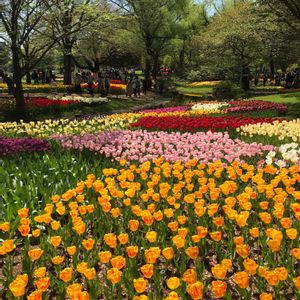 昭和記念公園開園9時半。チューリップガーデンまで15分かかる。 開園直後に入ったが人がいっぱいで 人が少ない時に見たいと思う人はいっぱい居る