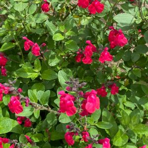 隣のマンションの花壇に 移植した チェリーセージも満開♥️