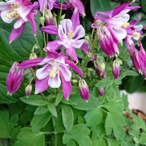 艶やかなオダマキさん 花持ち良く暫く咲いてくれてます(*ฅ́˘ฅ̀*)♡ 紫陽花の株元で涼しいお顔 オダマキさんは暑いの苦手ですね