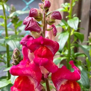 赤の金魚草 こぼれ種で咲いてます。 困ったことに小町藤(バーデンベルギア)の 鉢植えに😅💦 赤の金魚草は強いです! ピンクやイエローは 種を植えても発芽率悪くて😓