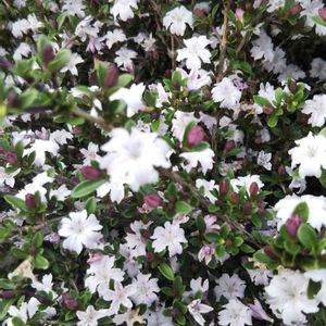 ハクチョウゲ(白丁花) 別名:バンテイシ(満天星) 花言葉:「純愛」 ☆⡱➳✩⡱➳✩⡱ 通常は、晩春から初夏にかけて 枝葉を覆うようにたくさんのお花を咲かせます。 星形の小さなお花の集まりを 煌めく満天の星になぞらえて 「満天星(バンテイシ)」とも呼ばれます。