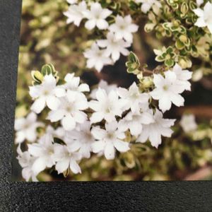 💚🤍ハクチョウゲ(白丁花)🤍💚 今年も咲きました💚🤍💚🤍 ネットで見ると、もっと花数が多いんですけど……😅 でも、斑入りの小さな葉っぱも可愛いし、お花もほんと小っちゃくて可愛いです🤍💚🤍💚🤍💚 昨日、株元にサギナを株分けして植え付けました!育つかな?育って🙏