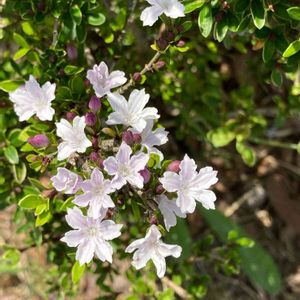 毎年、日陰の時間が多いのに、、咲いてます。小さい小さいピンクのつぼみから、小さいお花が、咲きます。しっかりめの細い枝です。お名前教えていただけたら、嬉しいです(^O^)
