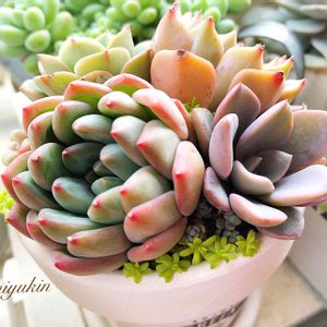 こんにちは♡ 前に寄せた子達🍀 みどり牡丹が 徒長気味になってしまい 抜きました😥 違う所へ とりあえず移動して ペンデンスをin✨(奥で見えない😅) セダムも新しく 足しました💕