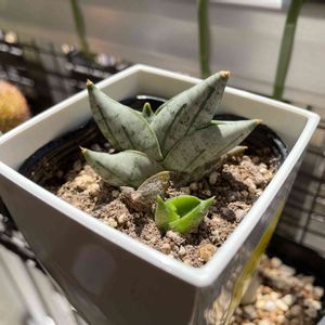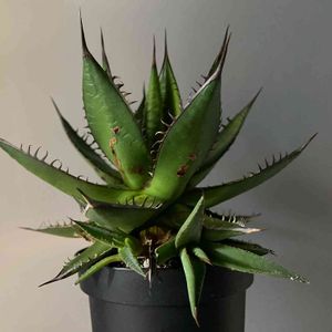 ⌘アガベの日&棘の日参加します。 冬越し中にやられた虫食いの傷が痛々しいけど、なんとか成長してくれてる🌱 子株もゆっくりだけど順調だし、秋の植替えシーズンに向けて成長してほしい株です🫠