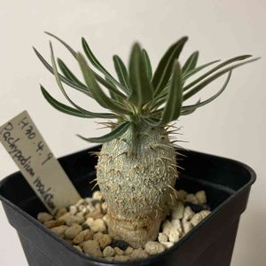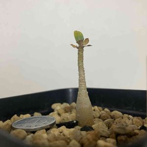 ⌘年の初めに実生株を記録してみる。その8 ○パキポディウム・ブレビカウレ・レウコキサンツム ○2019(R1).5.25に種まき(4年目) ○何回かに分けてかなり種まきしたけど生き残りは4株。の4つめ。 R3.12.28 1.1㌢→R5.1.14 1.7㌢ これも葉っぱが多くて大きい🌱けど、横より縦に成長。 4株の中でいちばん水を欲しがるやつで、油断すると胴体がシワシワになる🤣