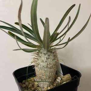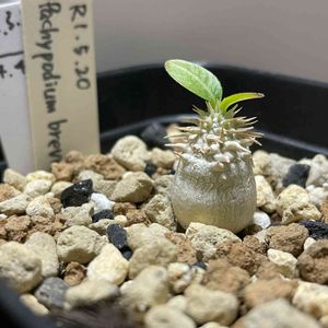 ⌘年の初めに実生株を記録してみる。その7 ○パキポディウム・ブレビカウレ・レウコキサンツム ○2019(R1).5.25に種まき(4年目) ○何回かに分けてかなり種まきしたけど生き残りは4株。の3つめ。 R3.12.28 1.6㌢→R5.1.14 2.3㌢ 成長遅いのばっかりな中いちばんの成長株。先の2株と比べると葉っぱも多くて大きい🌱