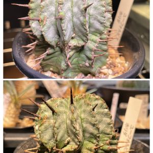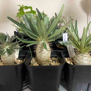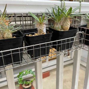 ⌘置き場所がなくて未だにベランダにいるチームの実生3年目グラキリス🌱 日光も1日1時間くらいしか当たらんけど思ったより調子がいい? ちなみに右端にいるのは実生5年目グラキリス。成長が遅くて3年目チームに追いつかれてる💦