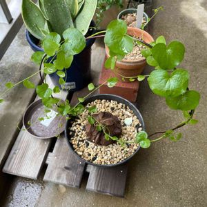 ⌘ベランダ越冬予定組その3🌱 育て始めて1年ちょっとの紫晃星🪴 水やり前後で変わる葉っぱの張り具合がすごく分かりやすい! 塊根を作ってくれるのは何年先かなー🧐