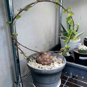 ⌘やっと目覚めた実生6年目のアデニウム🌱 多分こいつは秋型。毎年晩夏に目覚める。 今年に至っては亀甲竜よりも目覚めが遅い! 不思議だなー🤔