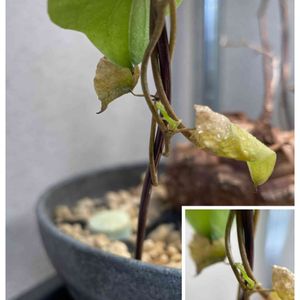⌘なんだこれ? 実生3年目グラキリスで1番の成長株🍠 中心部分に氷砂糖のカケラのような白い塊。 虫に卵付けられてるとかだといやだなー😷 詳しい方、教えてください!