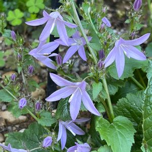 ☆カンパニュラ ポシャルスキアナ ステラ☆ 11月にたまたまお店で見つけて、よく知らないお花だけど衝動買い。 年中完全日陰の場所に地植えしたけど冬の間に葉っぱがモリモリしてきて、 4月に入ったら茎がぐんぐん伸びてきて 5月に入ったら開花! どんな風に育つのか咲くのか分からないまま半年待ったぞ〜♡ 星型の可愛いお花が咲きました(*´▽`*)♬*゜ グランドカバーにもなるらしく、花壇をはみ出てにょきにょき地面を這ってきました〜