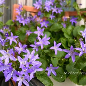 カンパニュラ ポシャルスキアナ...( ・᷄ ౩̎・᷅)ムズアルペンブルーとも呼ばれるらしいです☆ 苗を買った時はホント草!って感じで、本当に札にあるような花が咲いてくれるのか疑わしかったけど、星型のお花いっぱい咲いてきて花もちもいいです☆横に広がるのでカメラ収まりは悪いですー😅