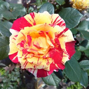 🍀🌻🪴💐🌹🌻🍀 🍀❤️🧡薔薇・モーリスユトリロ🧡❤️🍀 安曇野市豊科近代美術館にて 💐赤いバラの花言葉は(愛情)、オレ ンジのバラの花言葉は、(絆)です 💐モーリスユトリロ は四季咲きで花 色は赤・朱、樹高は90~120cm く らいに育ちます 💐ローズ赤に絞りが特徴の、波状弁 咲き、中大輪房咲きの花で、大き さは中大輪、ティの微香がします 💐名前の由来は、パリの風景をたく さん描いたフランス近代画家にち なんでいます 🍀🌻🪴💐🌹🌻🍀