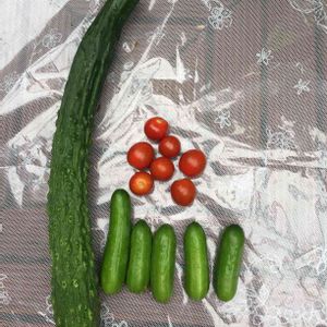 ミニきゅうりのはずなのに…やってしまいました、収穫延期😅😅 真ん中のが普通サイズ、巨大化したものは2倍のサイズになっています。さて、何を作ろうかな😋