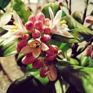 8時まで仕事して帰ったらレモンの花が咲いていた~🍋 受粉しなければ!!! この木の株元で大量のセダムと野ざらしで越冬した強めの葉挿し達がすくすく成長中☀️