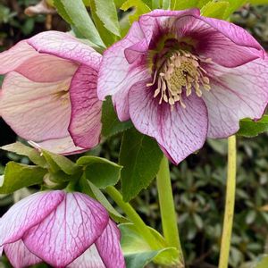 昨年咲いた(上2枚の画像)クリスマスローズが今年はこんな感じ(下の画像)の花を咲かせています🤗🍃🌸🍃