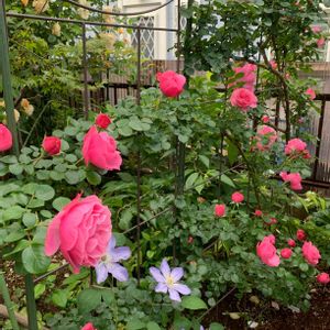 レオナルドダビンチとクレマチス🌹 左上はパフビューティ クレマチスが、もっと大きくなってほしいな。