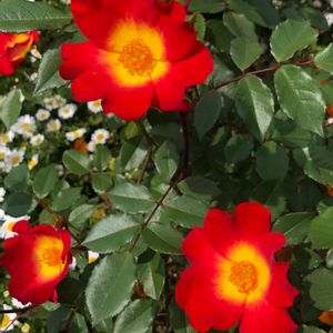 スパニッシュビューティー 手のひら程の花 下ののほうにはクレマチス 咲いてます。