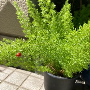 アスパラガスメイリー🪴 いつの間にかひとつぶ赤い実を付けていました😊✨ 可愛い❤️