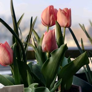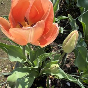 3月下旬 🌞 花粉症に悩まされながら、春の暖かさを楽しんでいます。 10月末に植えた チューリップ 一重咲き アプリコットビューティー 咲きました🌷 杏色からピンク色に変わる春らしい色。 球根が約5ヶ月土の中にいる間は長いような短いような。