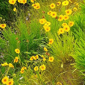 今晩は オオキンケイギク咲きましたよ お花畑の真ん中でユラユラ揺れてますよ(*˘︶˘人)♡*。+‹‹\( ´▽`)/››〜♪