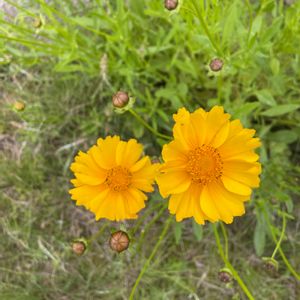 こんばんは😊 特定外来植物のオオキンケイギクです💛 実家の隣の東京都の空き地に群生しています💦💦 母とクレマチス白万重を植えるのに、二人でセロテープをはがしたり、クルクルの蔦を解いたり大変〜‼️って言いながら作業していました😆 通りすがりの女性に、隣もお宅の花壇って聞かれて‥ オオキンケイギクが綺麗だから欲しいって🫢 特定外来植物だから駆除しなければいけないのに、東京都の土地だって話したら根っこごと持って行ったって😰 栽培しちゃダメなのにな〜 綺麗で元気が出るカラーだけどね💦💦
