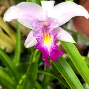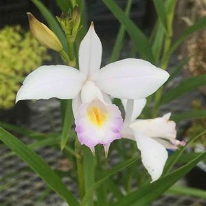 ナリヤラン(成屋蘭) 山野草コーナーで カトレアに似た常緑性の地生ランを 見つけました。 ナリヤラン(成屋蘭)の「成屋」は、西表島の内湾にある小島、内離島にあった成屋集落(現在は廃村)に由来するそうです。