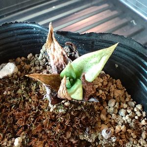 ダドレアブリトニー播種4日目 見えにくいけど発芽始まりました これはダドレア畑ができそうな予感