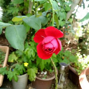 ベルサイユのバラが一輪また咲きました(^∇^)赤が綺麗に咲いてくれました。 我が家はベルサイユのバラと、オスカル、アンドレの3つがあります(╹◡╹)